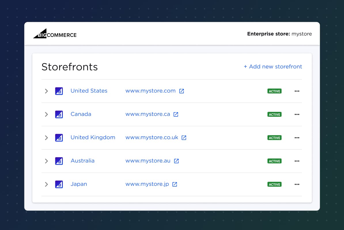 Vende los mismos productos en múltiples marcas o regiones, todo gestionado desde un único panel de control. Además, adapta y localiza fácilmente la experiencia de cada storefront para clientes de todo el mundo con herramientas multidivisa, cálculo de impuestos basado en la ubicación geográfica y amplio Soporte de API.