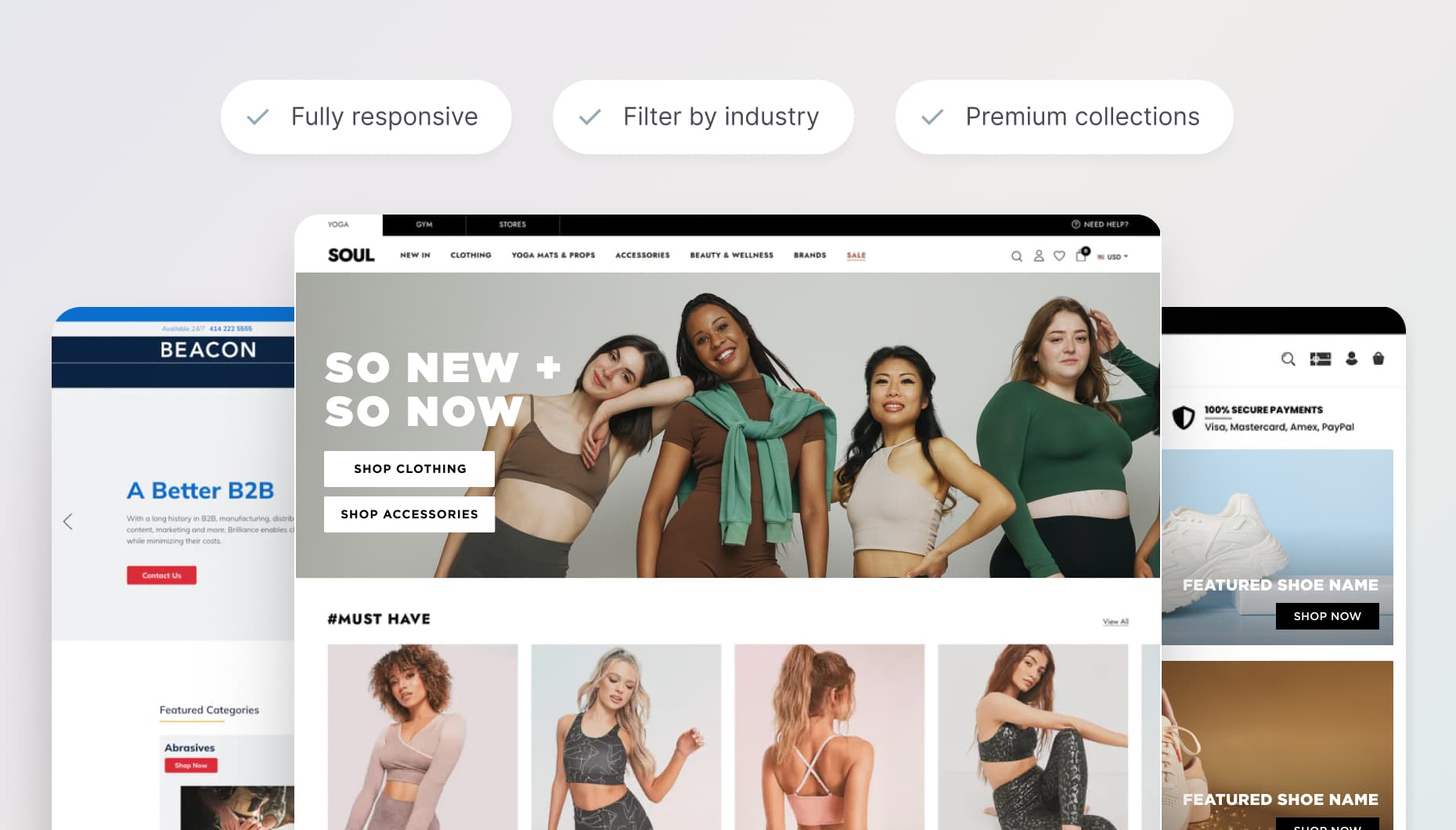 Tu tienda debe ser accesible en todos los dispositivos para satisfacer a los clientes dondequiera que estén: todos los temas responden a los dispositivos móviles desde el primer momento. Utilice el modo de vista previa para ver cómo se ve su plantilla en todos los dispositivos. Además, todos los temas vienen automáticamente con pago optimizado para dispositivos móviles.