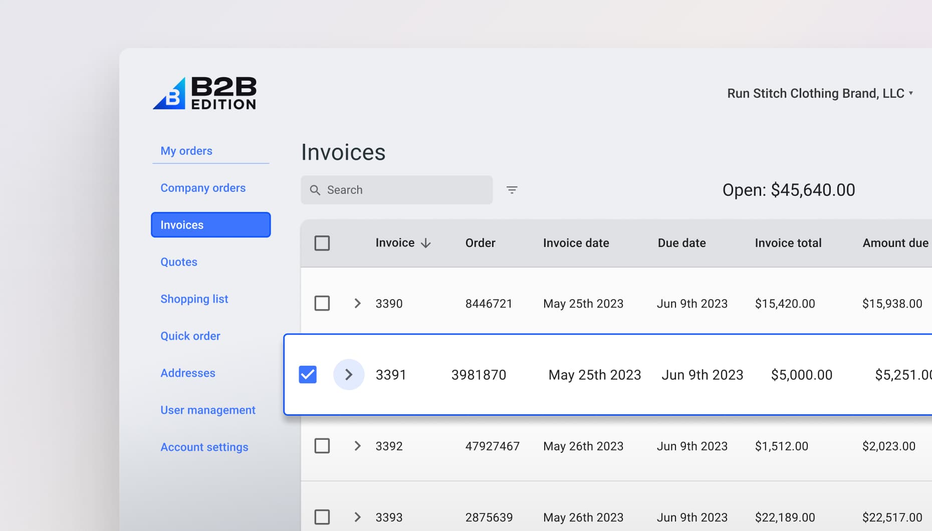 A medida que su negocio crezca, invierta en nuestro galardonado B2B Edition que tiene las capacidades B2B avanzadas que usted y sus compradores anhelan (cuentas corporativas, cotizaciones, facturas, flujos de trabajo de aprobación de compradores y mucho más), todo en la plataformas diseñada para hacer crecer su negocio.
