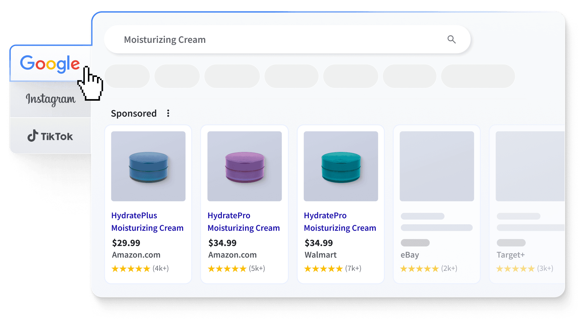 Las integraciones directas y la optimización del rendimiento en los principales canales de búsqueda, plataformas de redes sociales y canales de visualización lo ayudan a atraer a más clientes y lograr una visibilidad de marca inigualable (Google, Instagram, TikTok y más).