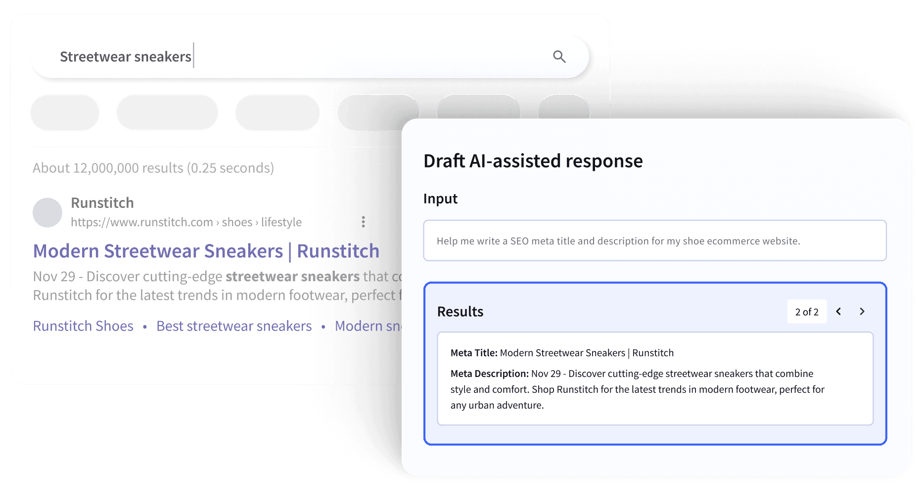 Nuestros fragmentos enriquecidos incorporados mejorarán sus listados de resultados de búsqueda con información como calificaciones, precios, marca y niveles de existencias. Esto hace que sus productos sean más fáciles de encontrar directamente desde los motores de búsqueda.