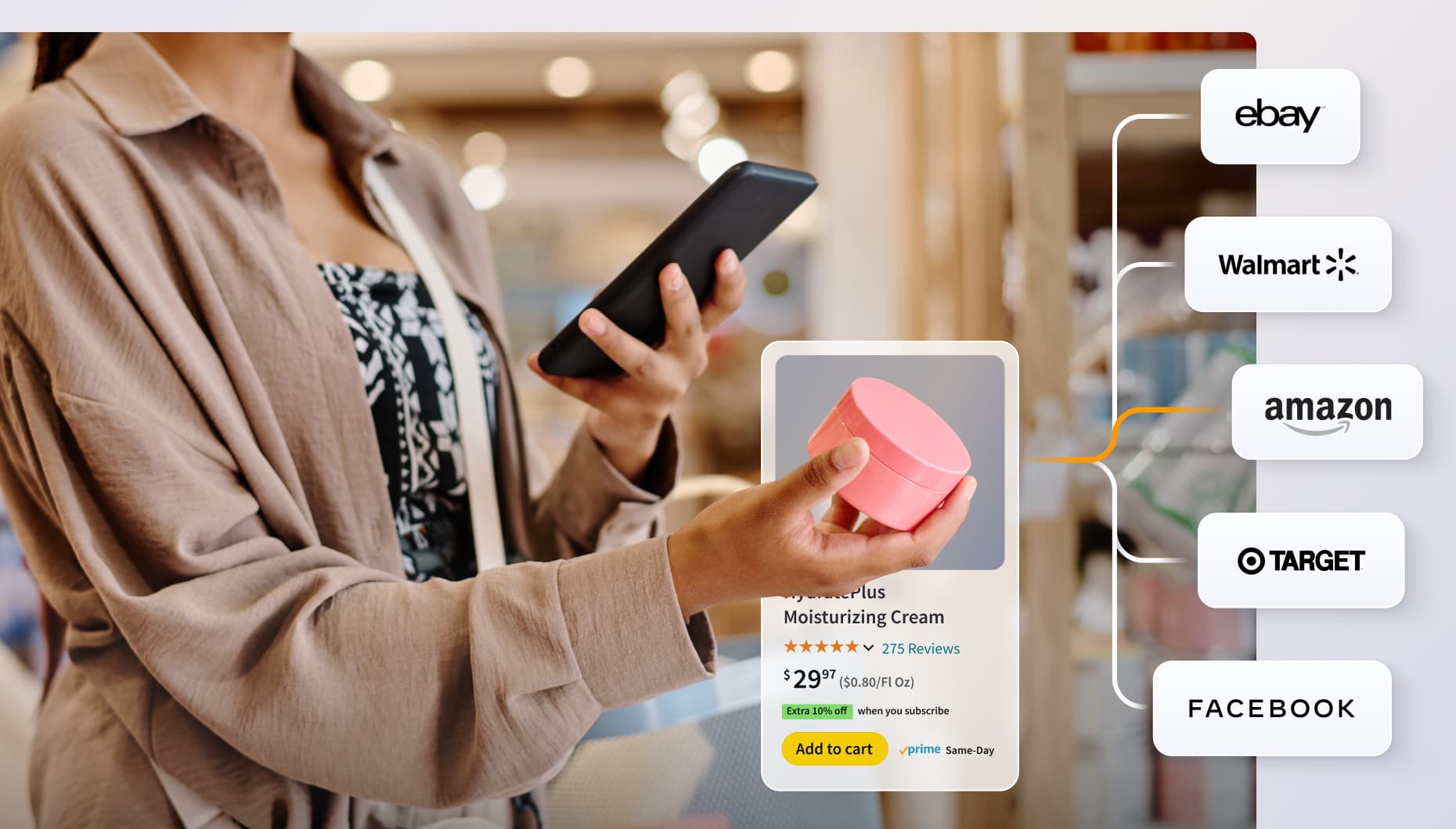 Llega a más compradores a través de los principales canales de mercado, redes sociales, búsqueda y publicidad.