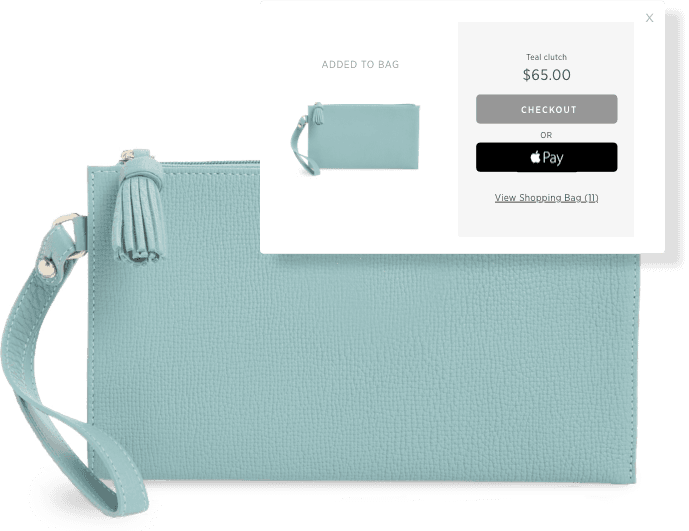 Llegue a su primera venta más rápido aceptando instantáneamente las principales tarjetas de crédito, PayPal y Apple Pay con un solo clic.